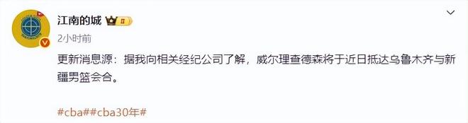 据媒体人“江南的城”透露,新疆男篮已经确定了新的小外援人选,威尔-理查德森将会于近日抵达乌鲁木齐和球队会合。威尔是一名26岁的年轻后卫,有着1米96的身高,是2023年的NBA落选秀。在上个赛季,威尔在NBA发展联盟打球,场均能够得到12分3.7个篮板4.6次助攻的数据,三分命中率37.2%。