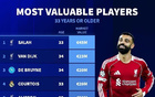 德转33岁+球员身价前10:萨拉赫4500万第1,梅西第7,C罗第9