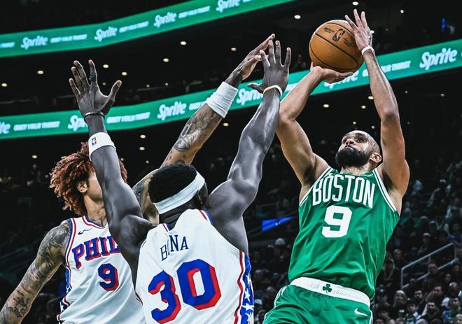 本场比赛,双方在首发阵容上面,76人这边派出的是恩比德、马克西、埃奇库姆、乌布雷和巴洛。凯尔特人这边派出的是布朗、豪瑟、科塔、普理查德和怀特。首节比赛开始,绿军率先拿到球权,科塔冲撞起来谁也不怕,打进本场比赛首个进球;乌布雷大空位三分出手也为76人开张,怀特的后撤步干拔跳投稳稳命中,马克西超远距离三分发炮一箭穿心,科塔中路切进篮下,轻轻把球送进篮筐打成;巴洛势大力沉坦克碾压上篮挑落两分,布朗高难度后仰跳投空心命中。两队首节比赛就展开拉锯战,比分你追我赶交替领先维持到节末。