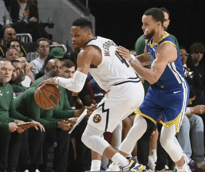 就说最后时刻对库里的防守,如果有威少在,那肯定会防得更好,还会让库里打成这样吗?威少留在掘金的最后一场面对勇士的比赛里,当时他拿到了12分12板16助3断2帽的数据,手握超级大三双并且带队战胜了勇士,你就看这个数据,看他防守端3抢断2盖帽的表现,如果有威少在场,库里还能打成现在这样吗?
