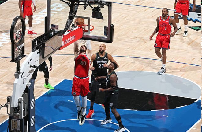 然而, 快船与前几场比赛的失利不同的是,在最后时刻,球队并没有放弃,球队凭借着哈登和祖巴茨的进攻,他们在2分35秒的时间里打出一波8-0的攻击波,随着祖巴茨2+1打成,快船与森林狼102-102战平。康利两罚全中之后,博格达诺维奇两分打进,球队在最后30秒的时间再次打平。