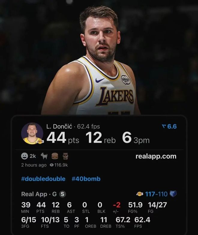 他复出首战就飙出了44分12篮板6助攻