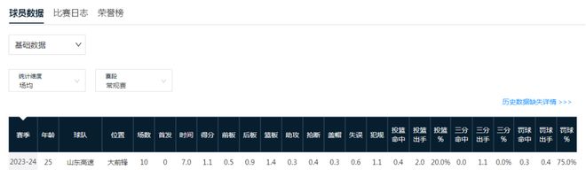 阿泽在效力山东男篮的一个赛季,他出场10次全部是替补,场均7分钟仅得到1.1分1.4篮板0.3助攻0.4抢断0.3盖帽数据。