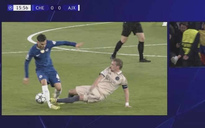 欧冠联赛第一阶段联赛第3轮,切尔西主场迎战阿贾克斯。比赛的上半场,阿贾克斯球员泰勒因飞铲被裁判直接出示红牌罚下,阿贾克斯不得不10人应战。
