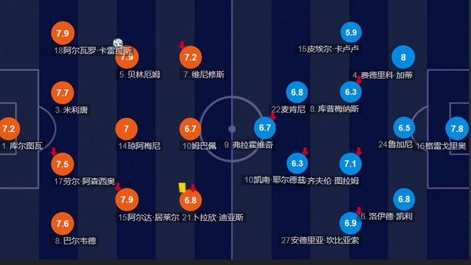 只不过对比之下,皇马“成也萧何败萧何”,主要问题就集中在了中场方面。可以说这既是他们能够战胜对手的根本,也是效率制约接下来要调整的点。本场比赛哈维-阿隆索派出了贝林厄姆、琼阿梅尼、外加居莱尔的阵容,巴尔韦德退居右边后卫客串这个位置,给前场的维尼修斯姆巴佩输送炮弹。迪亚斯更像是自由人的指挥官角色,在中前场方面负责衔接。