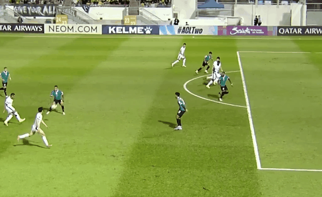 比分领先的大埔,进攻端依旧保持强势的攻击欲望,频频威胁国安的禁区。