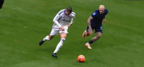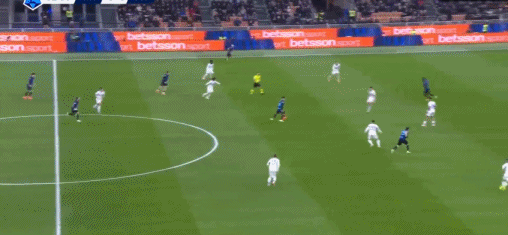 第45+2分钟,迭戈-卡洛斯拽倒小图拉姆后又踢倒劳塔罗,裁判出示黄牌