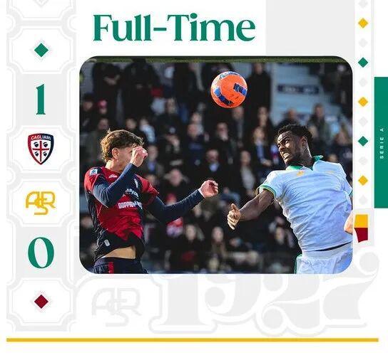 北京时间12月7日22:00,意甲联赛第14轮,罗马客场挑战卡利亚里。上半场埃斯波西托抽射造险,罗马仅1射正,半场结束,罗马0-0卡利亚里。下半场切利克直红被罚下,斯维拉尔献神扑,盖塔诺爆射打破僵局,最终十人罗马0-1卡利亚里两连败。