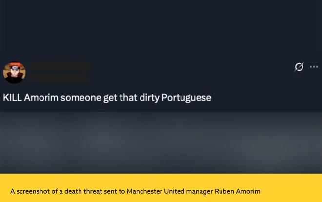 BBC看到的部分信息中,包含针对阿莫林的死亡威胁,其中一条写道:“杀了阿莫林——谁来干掉这个肮脏的葡萄牙人。”