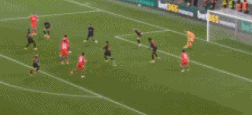 上半场补时第3分钟,杜埃带球内切兜射破门,1-4!