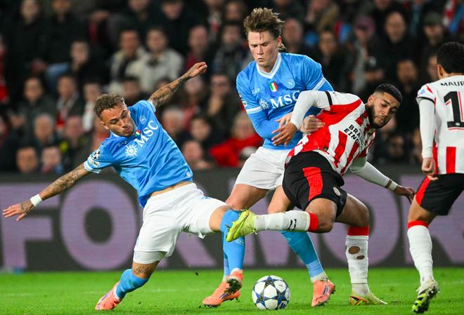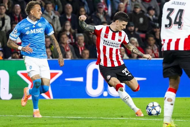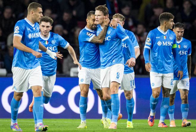 客场面对埃因霍温。其实,那不勒斯还是取得了不错的开局。第31分钟,斯皮纳佐拉送出传中,麦克托米奈头槌破门,昔日的曼联球员,如今早已成为那不勒斯阵容中的绝对核心。