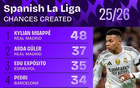 本赛季西甲创造机会榜:姆巴佩48次居首,居莱尔37次第二