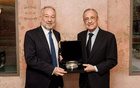 传统环节,弗洛伦蒂诺与尤文主席在欧冠赛前互赠礼物