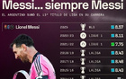 梅西职业生涯获得13座联赛冠军:西甲10冠、法甲2冠、美职联1冠